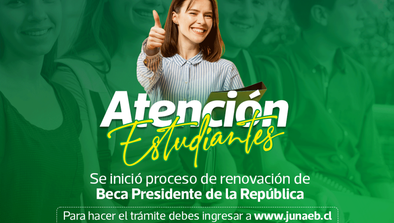 La Municipalidad de Curicó, a través de su Departamento Social, informó el inicio del proceso de renovación de la Beca Presidente de la República para el año 2026. El trámite se debe realizar de manera online en el sitio web de JUNAEB y estará disponible hasta el 31 de enero de 2026.
